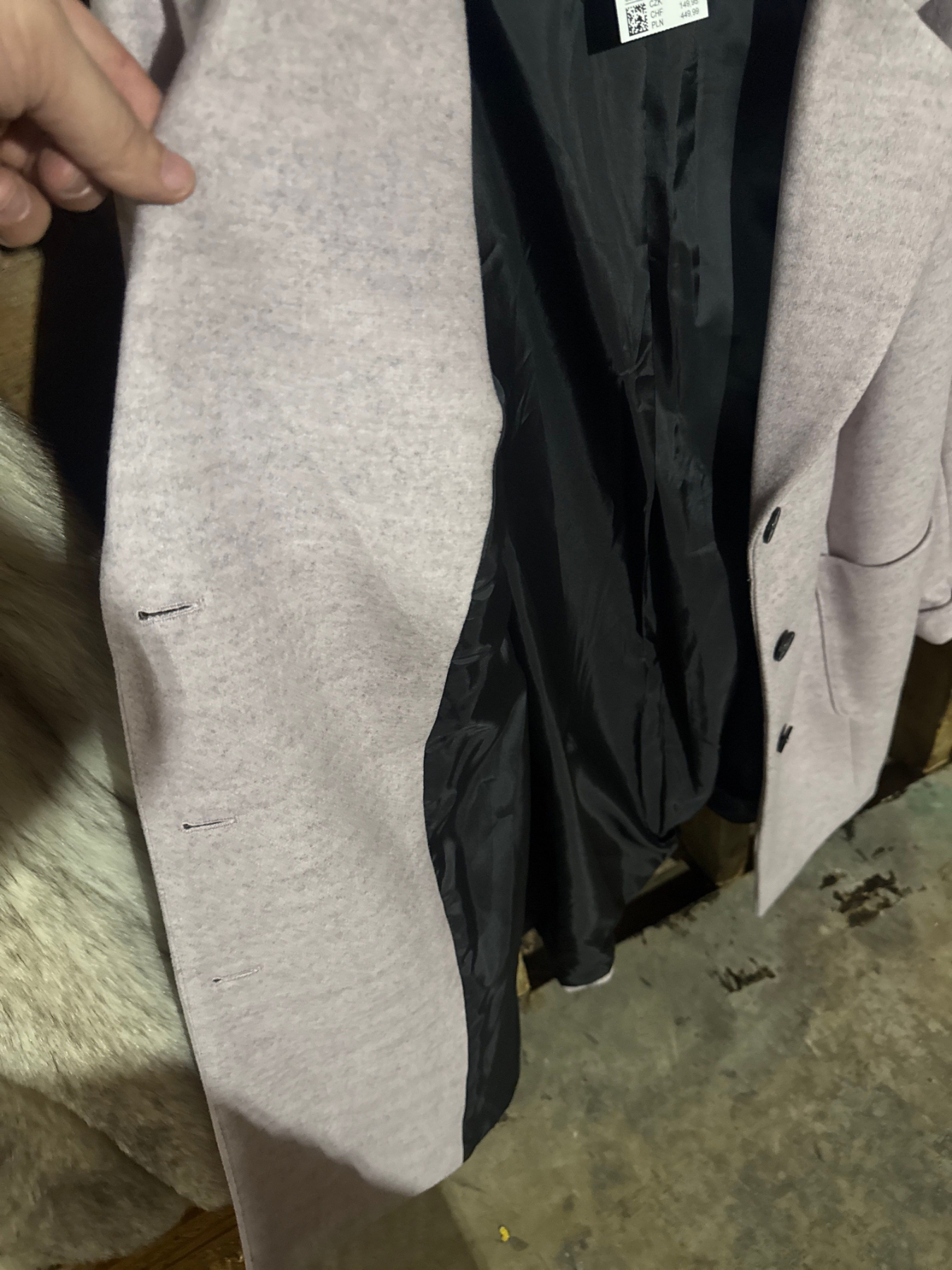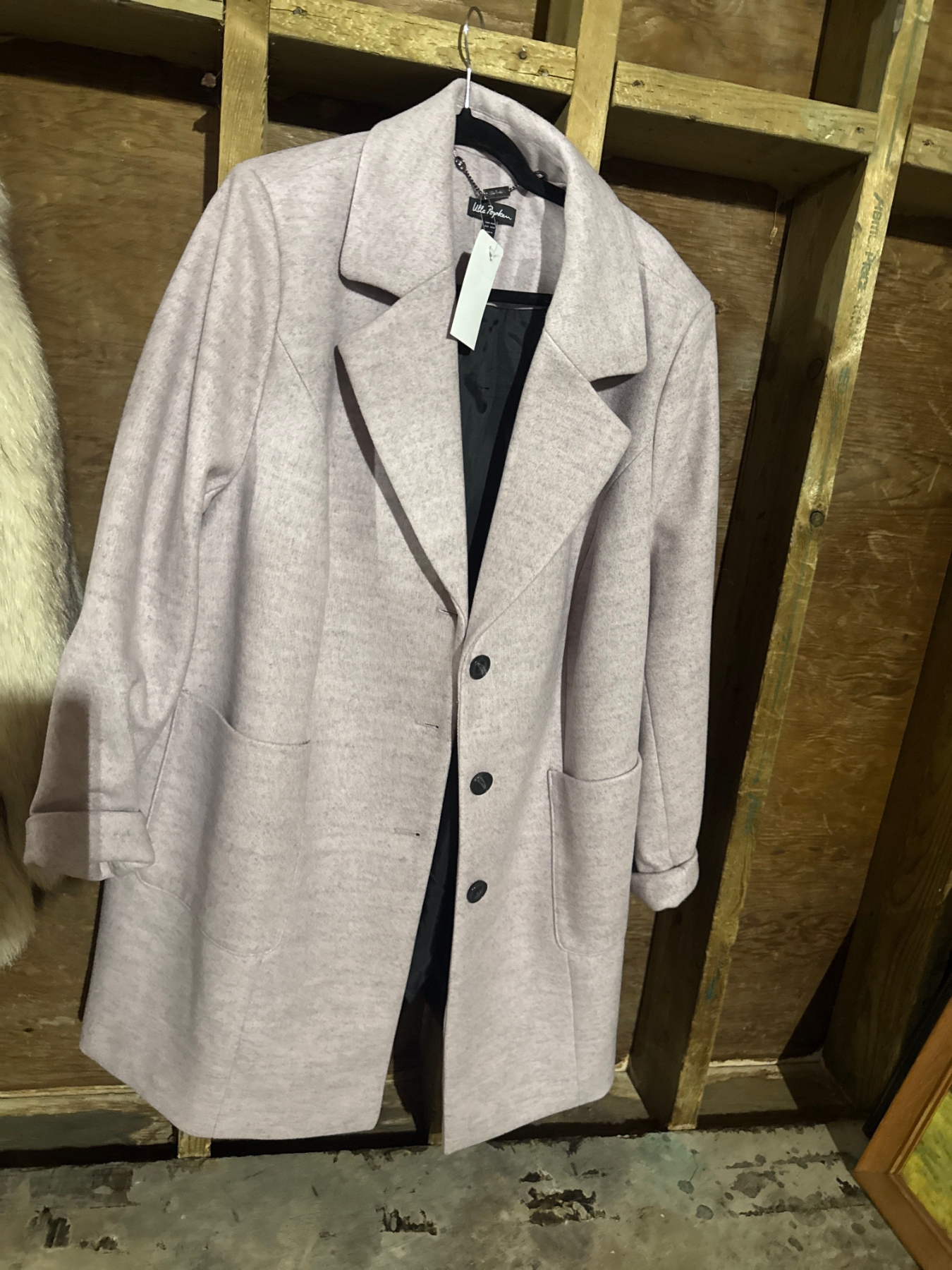 lavender, notched-lapel, single-breasted wool-blend coat