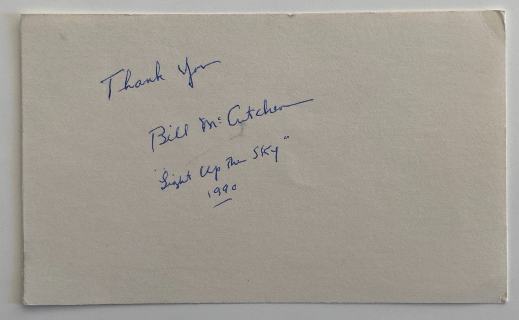 original signature. Inscribed: Light up the sky 1990. 5x3 inches