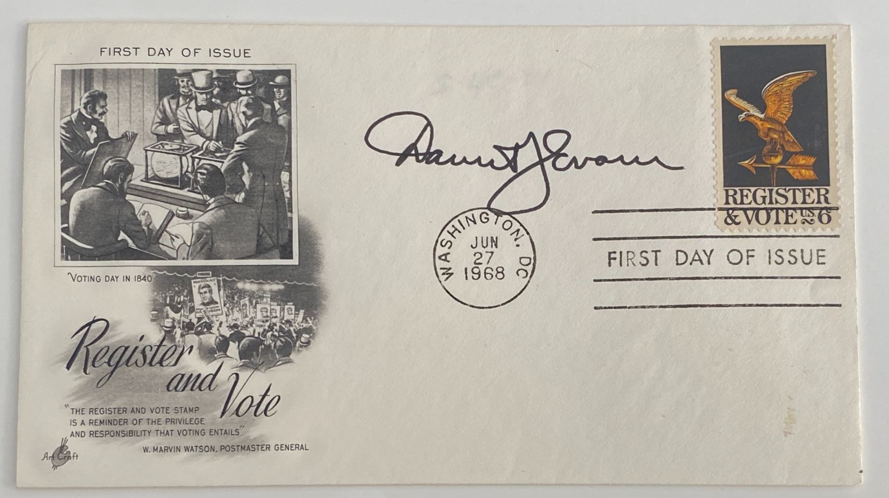 signed commemorative cover. June 27, 1968. 6x4 inches